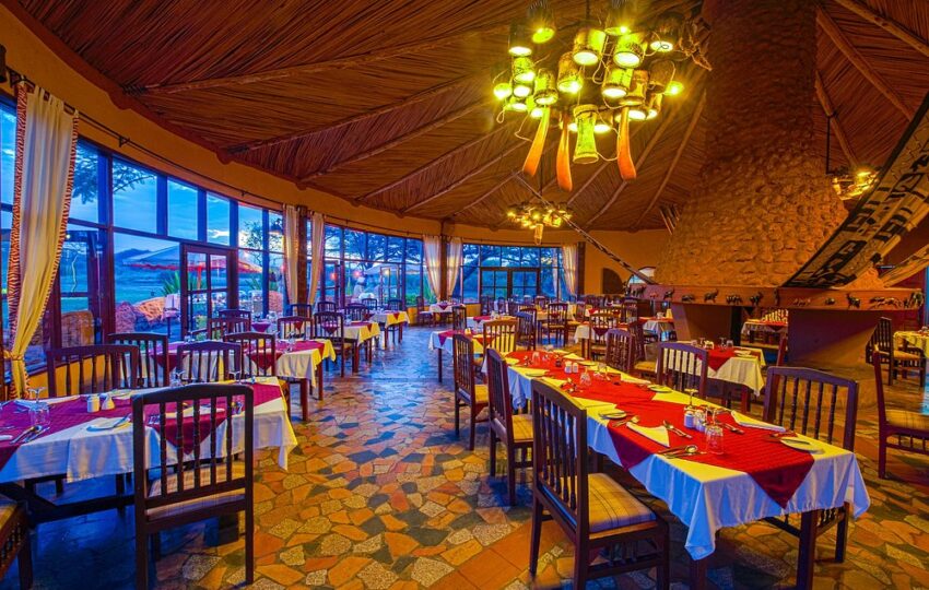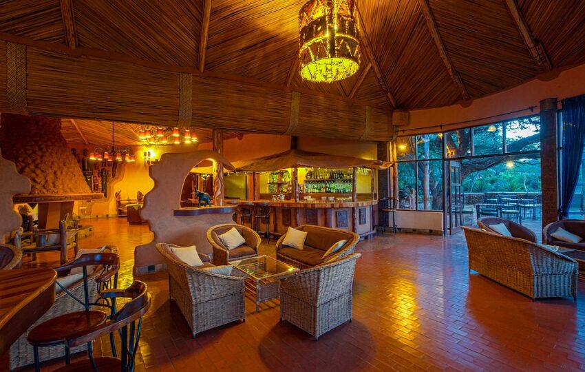 The lodge’s architecture blends seamlessly with the natural surroundings, featuring traditional African motifs, warm earthy tones, and spacious public areas designed for relaxation. Whether it’s the morning light casting shadows over Kilimanjaro or the evening glow on the plains, the lodge’s elevated position ensures every moment is picture-perfect.