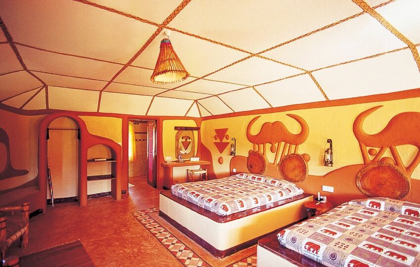 - Interiors inspired by African décor and natural elements